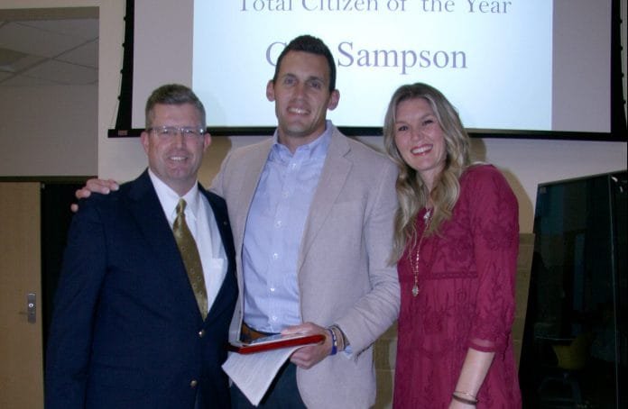 The Spanish Fork Salem Area Chamber of Commerce is proud to present the Total Citizen of the Year award to Colt Sampson. When I was asked to present this award, I investigated Colt’s past and discovered that we have a common connection through our association with the University of Utah – hear me out. Colt attended the UofU where he graduated in 2009 with a degree in Resort Management. Colt played football for the Utes while maintaining status on the Athletic Academic Honor Roll. He played in the 2009 Sugar Bowl game where the Utes upset fourth-ranked Alabama 31-17. I, on the other hand, am a proud parent of a UofU drop out. (She has since redeemed her “drop out” status by obtaining a Nursing degree elsewhere and she currently works as a Coordinating Care Nurse at the Cleveland Clinic, in Ohio.)