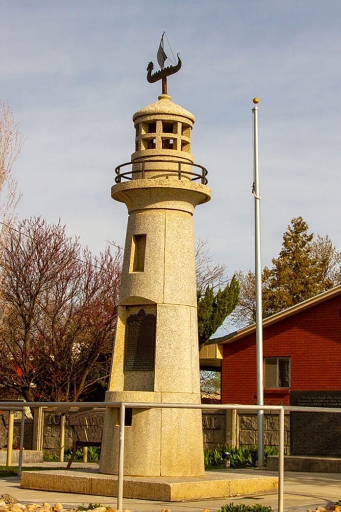 A one-ton volcanic rock from Vestmannaeyjiar, Iceland was mounted next to the lighthouse, adding to the story of the early emigration. Several plaques tell the history of the Icelandic pioneers. A “Wall of Honor” lists the names of the 410 who immigrated to Spanish Fork between 1855 and 1914.