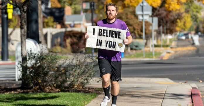 The man Nokes reached out to is Ben Lyne of Eagle Mountain, who started running with an “I Believe in You” sign in early 2022 for similar reasons. Lyne, who is a big ‘Lord of the Rings’ and ‘Avengers’ fan, said that he got his original inspiration from the scenes where the heroes are charging forward. He said that he wanted to do that with a sign as he “charged forward” letting people on their way to work in the morning know that someone believed in them.