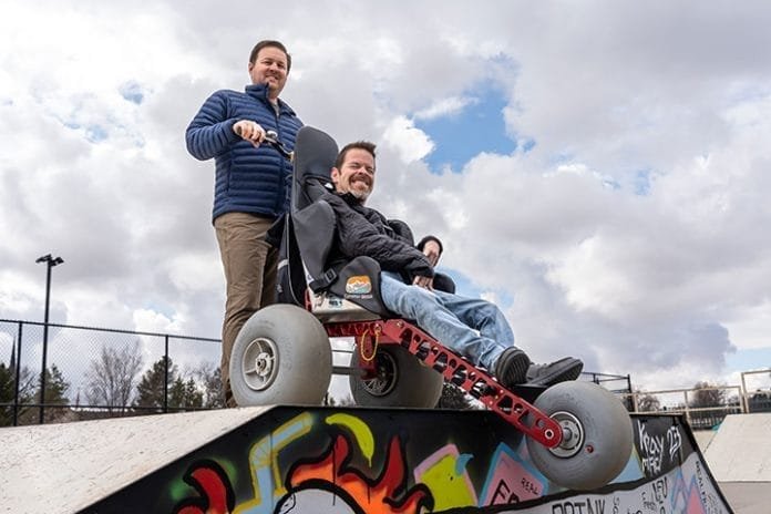 Sam was born with cerebral palsy, and for the first 36 years of his life, wasn’t able to experience the thrill of rolling up and down a rocky trail or the freedom of rolling down a hill unassisted, In 2019, however, he was introduced to what’s called the Extreme Motus Chair by his longtime friend Ryan Grassley, and together, they’re making adventure-filled history.