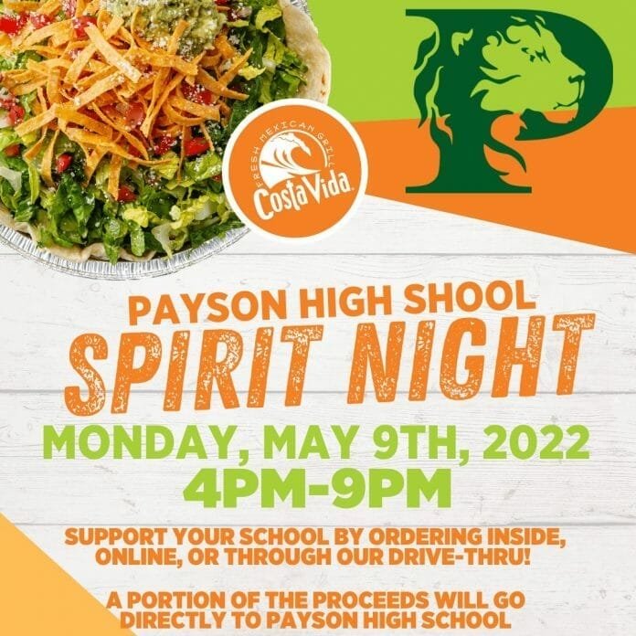 We are Costa Vida, we would like to support our community by helping our local high school and elementary school. We want to enrich the lives of students in our community. We invite you to have a fresh coastal Mexican grill at Costa Vida in Payson and be a part of our cause: where 20% of proceeds will go support Taylor Elementary. Payson, show your love on Spirit Night and dine with us!