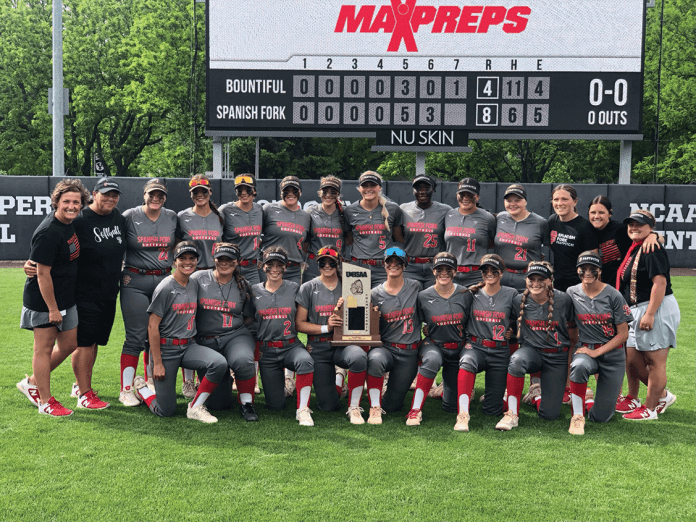 Congratulations to Spanish Fork High’s State 5A Girls’ Softball Champions. This is three years in a row! THREEPETE! Congratulations to the players, coaches, and families.